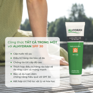 ALHYDRAN SPF 30 là một sản phẩm bổ sung cho dòng ALHYDRAN tiêu chuẩn. ALHYDRAN SPF 30 mang lại hiệu quả giảm sẹo, giảm ngứa, đỏ và khô da rõ rệt nhờ ứng dụng công nghệ MMRC, đồng thời cung cấp khả năng chống tia UV cấp độ cao với thành phần chống nắng SPF 30 và sự kết hợp của cả 2 bộ lọc vật lý và hoá học.